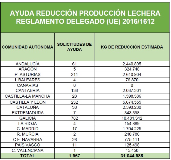 EL FEGA PUBLICA LOS DATOS DE LAS SOLICITUDES DE LA AYUDA REDUCCIÓN LÁCTEA